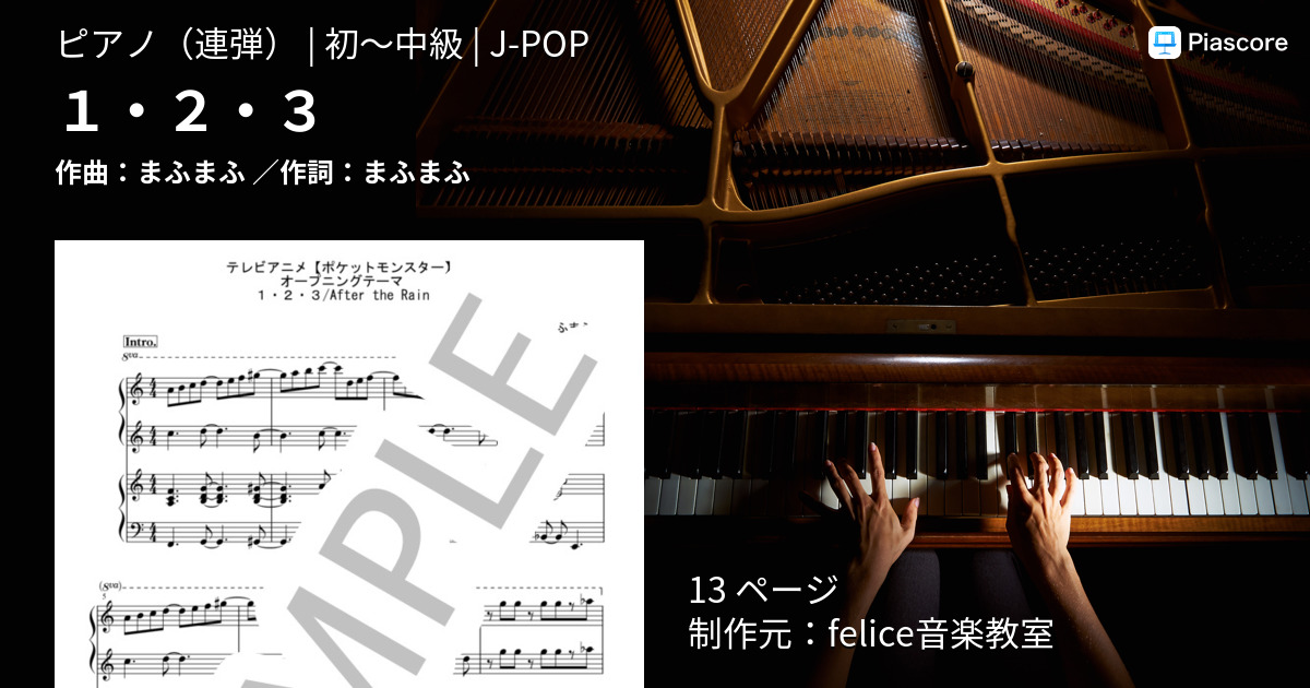 【楽譜】1・2・3 / まふまふ (ピアノ連弾 / 初〜中級) - Piascore 楽譜ストアこの曲はテレビアニメ『ポケットモンスター』オープニングテーマです。シンコペーションのリズム多く、曲の途中で拍子も変化し、テンポも速く元気の出る曲です。カッコよく聴き映えのする曲です。