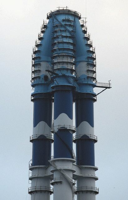 中部電力の火力発電撤退を受け、このシンボルである煙突の撤去工事が始まっています。