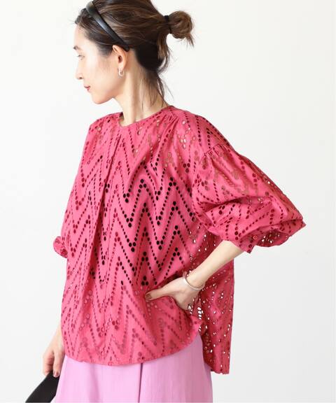 レース柄のブラウス。