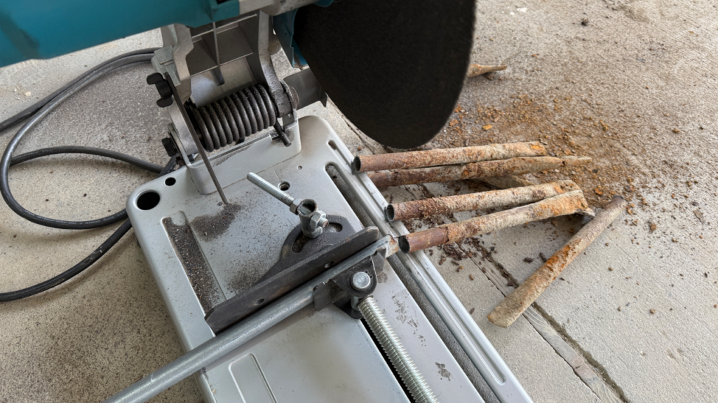 この写真は壊れた一筆魚道を直している光景です。