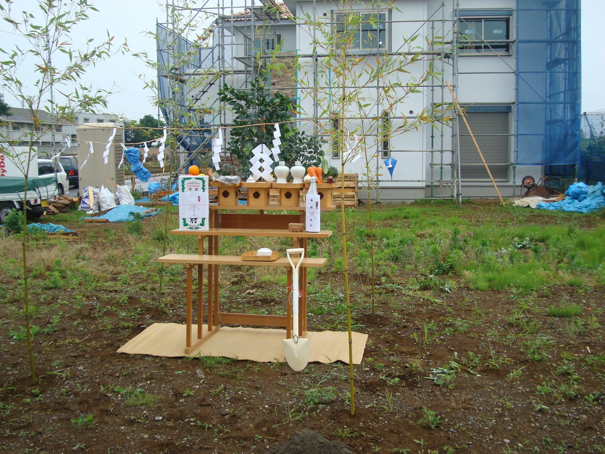 昨日は・・・朝から雨がぱらぱらと降り、地鎮祭が執り行えるかどうか心配していましたが、式の始まる少し前から小ぶりとなり、式の最中は雨も止み無事、地鎮祭を行うことができました。晴れ男のお子様のおかげで雨もピタッと止みました雨降って地固まるがピッタリですね!!これからの着工がとても楽しみです。