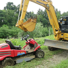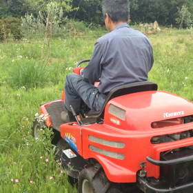 乗用草刈り機で。。
