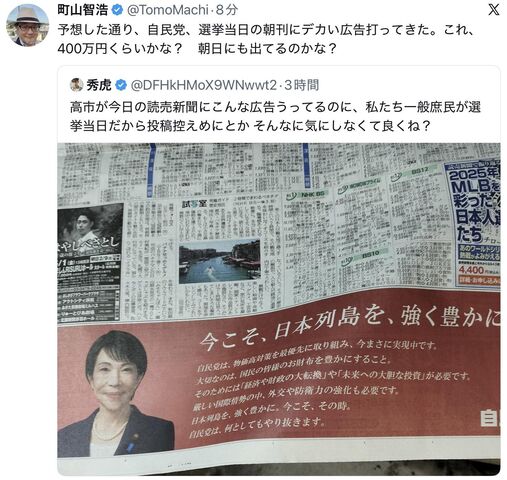 「高市総理は『自分が総理でいいか、国民に決めて頂く』