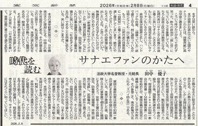 @サナエファンのかたへ」 法政大学名誉教授