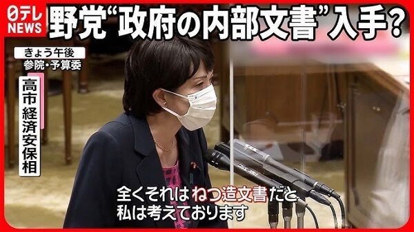 高市早苗経済安全保障担当相が3日、産経新聞の取材に応じ、同日の参院予算委員会で立憲民主党の小西洋之参議院議員が提示した、総務省作成とする文書の中の安倍(晋三)首相との電話会談内容について、在任中の安倍氏とは電話での会談が困難で放送法にも強い関心がなかったとして内容は捏造(ねつぞう)だと強調。文書の作成過程についても「私の電話を盗聴しているのか」などと批判した。