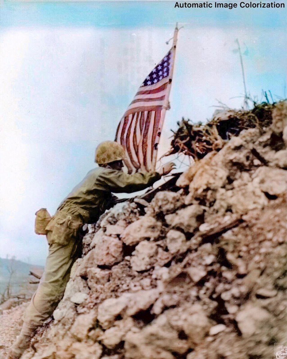 79年前の今日。1945年5月29日,沖縄戦にて,首里城の頂に星条旗を立てようとするアメリカ兵。