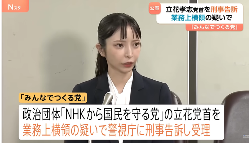 「NHKから国民を守る党」の立花孝志党首を業務上横領の疑いで