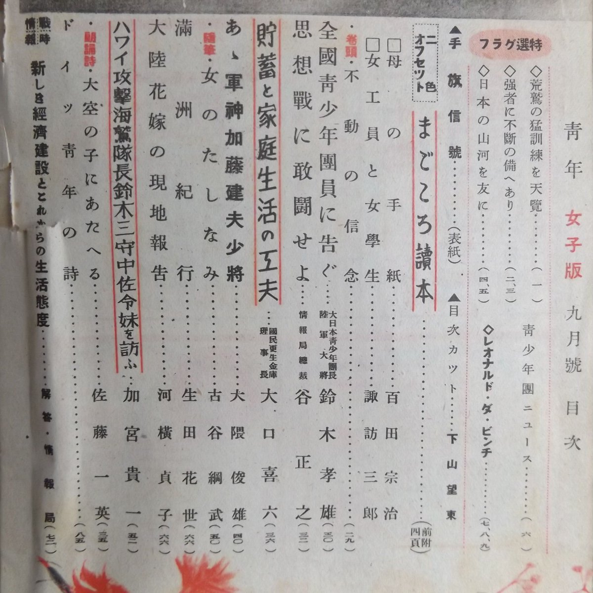 「青年(女子版」(昭和17年9月1日大日本青少年団本部)