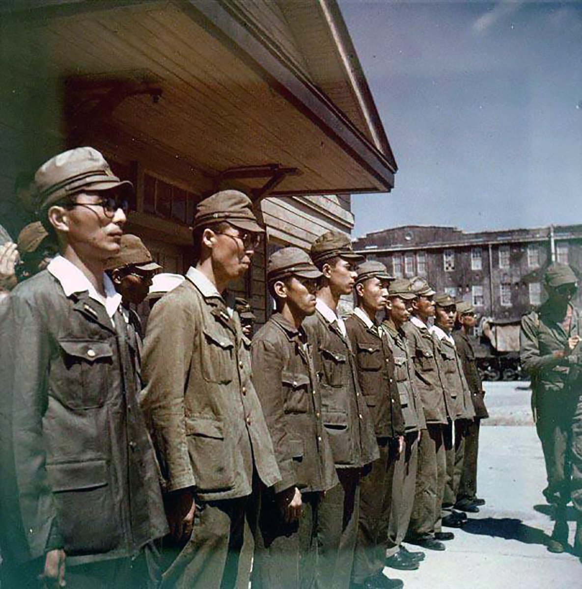 80年前の今日。1945年8月30日,横須賀基地降伏のために整列する日本軍将校・兵士たちのカラー写真。
