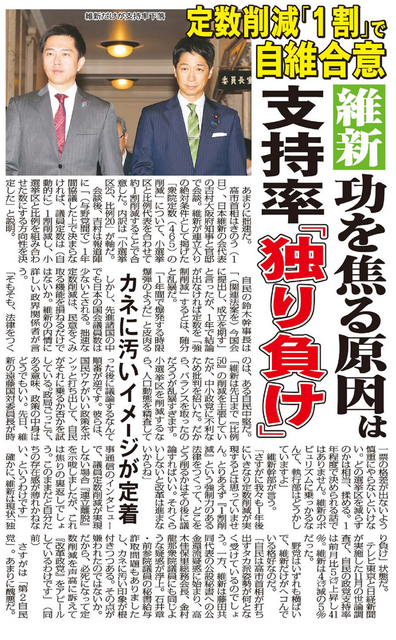 定数削減も夫婦別姓潰しも…改めて自維連立政権合意のおぞましさと身勝手