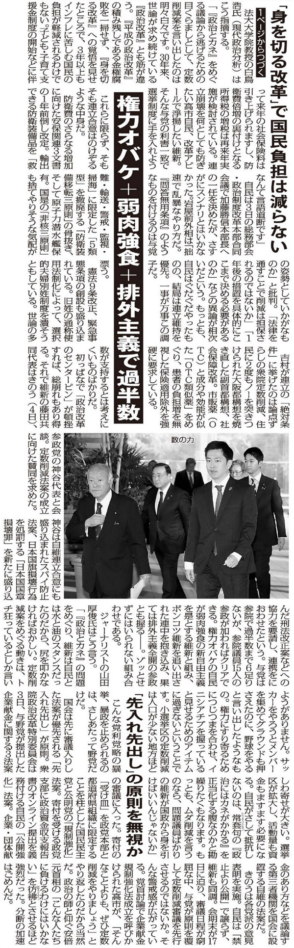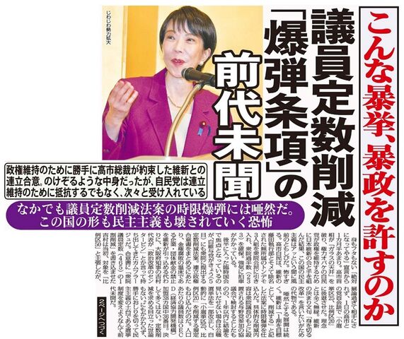 なかでも議員定数削減法案の時限爆弾には唖然。