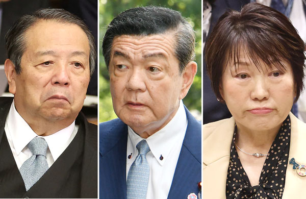 (村上誠一郎前総務相、伊東良孝前沖縄北方担当相、阿部俊子前文科相) /(C)日刊ゲンダイ