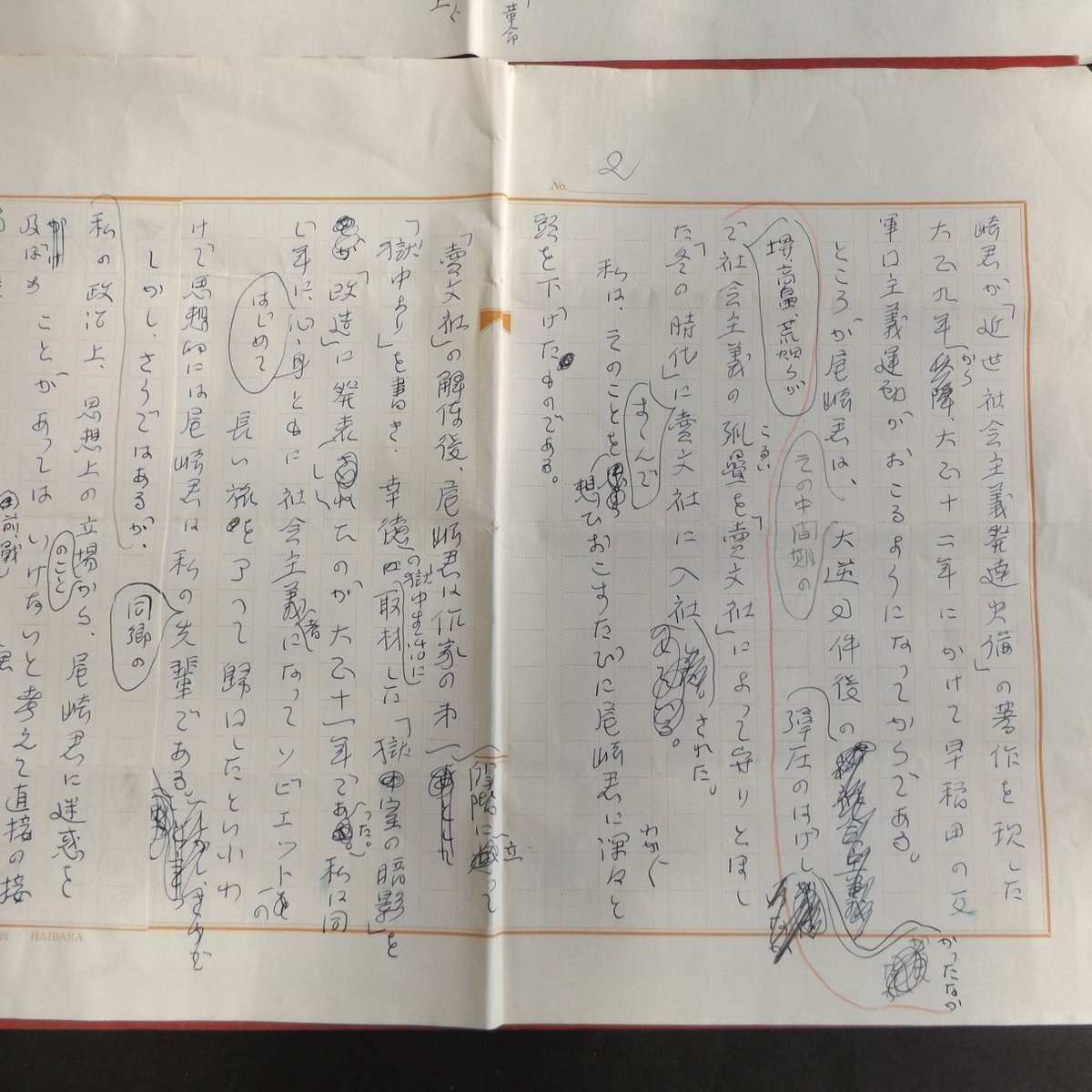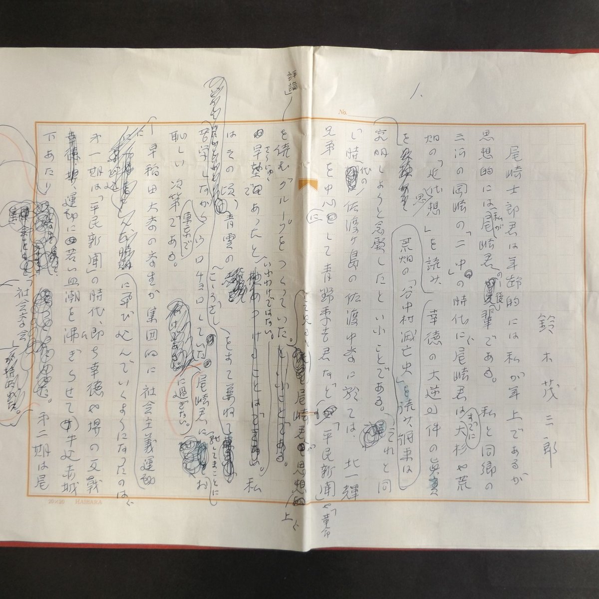 鈴木茂三郎草稿(三枚完)「尾崎士郎と大逆事件」()