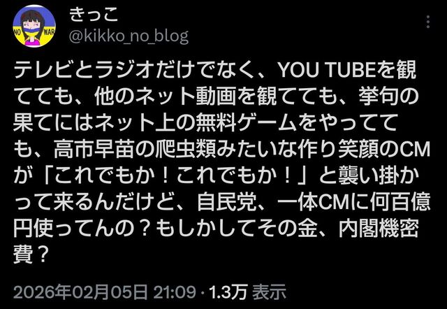 ただでさえ、【高市早苗を信任するかどうか解散】をしておきながら、逃げ回わる高市早苗が解散で使用したお金は、最低でも855億円かかるのに