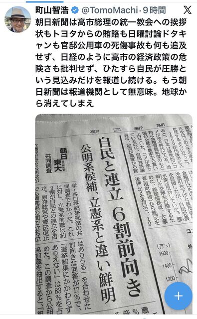 安倍晋三≒統一教会集団≒高市一派の「狙いどうり」