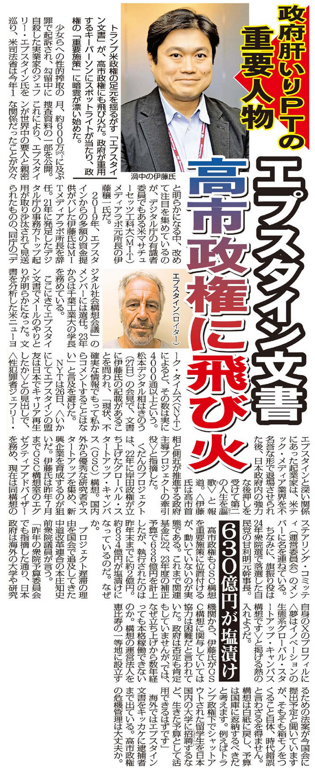 エプスタイン—伊藤穰一問題が高市政権のアキレス腱になる可能性?