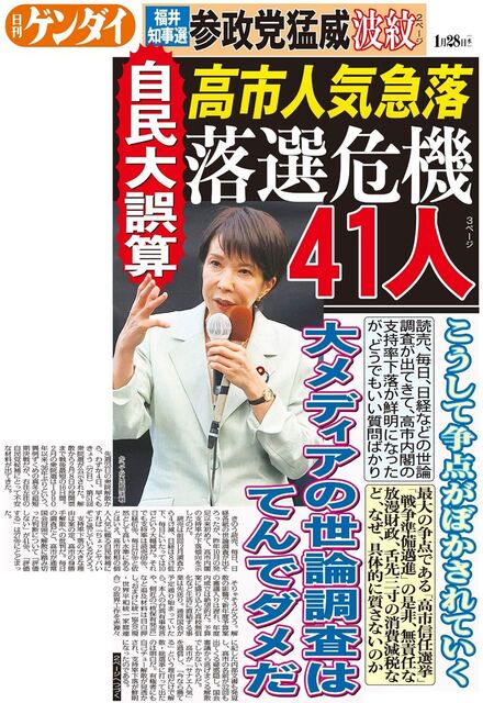 ※2026年1月27日 日刊ゲンダイ1面 紙面クリック拡大
