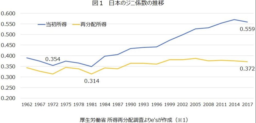 日本のジニ係数の推移(イーズ未来共創フォーラム)