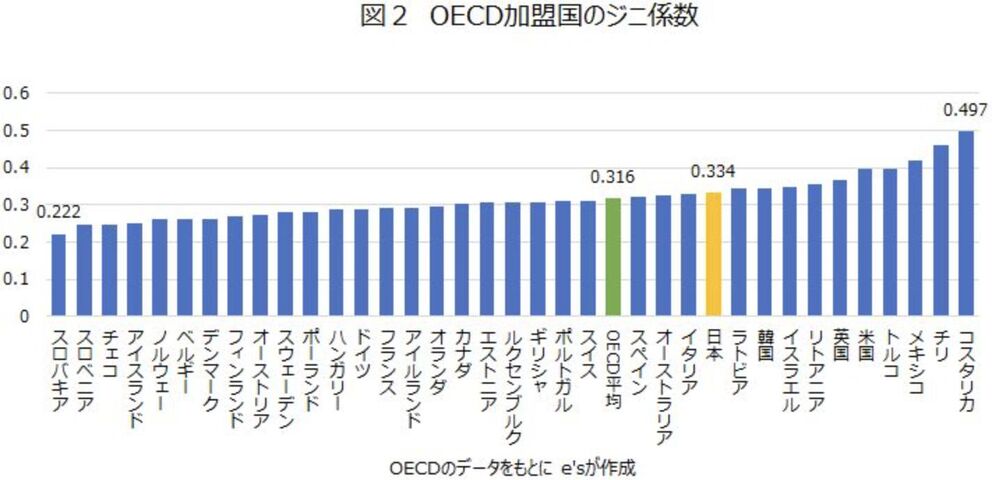 日本のジニ係数の推移/OECD加盟国のジニ係数(イーズ未来共創フォーラム)