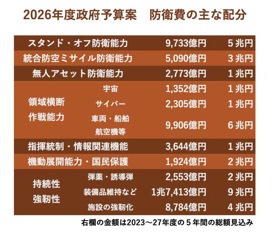 2026年度政府予算案 防衛費の主な配分(JB press)