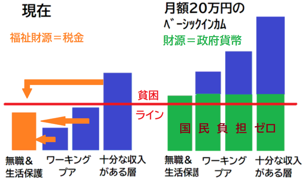 政府通貨によるベーシックインカムと国有銀行利子の廃止が人類を経済成長の強制から解放する利剣となる。