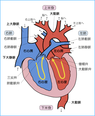 下図は、お腹の中の赤ちゃん(胎児)の心臓。