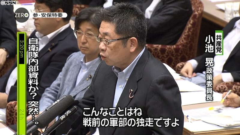 共産党小池議員は、自衛隊内部資料入手方法と入手先を、偽証できない国会の場において証言するべきです。