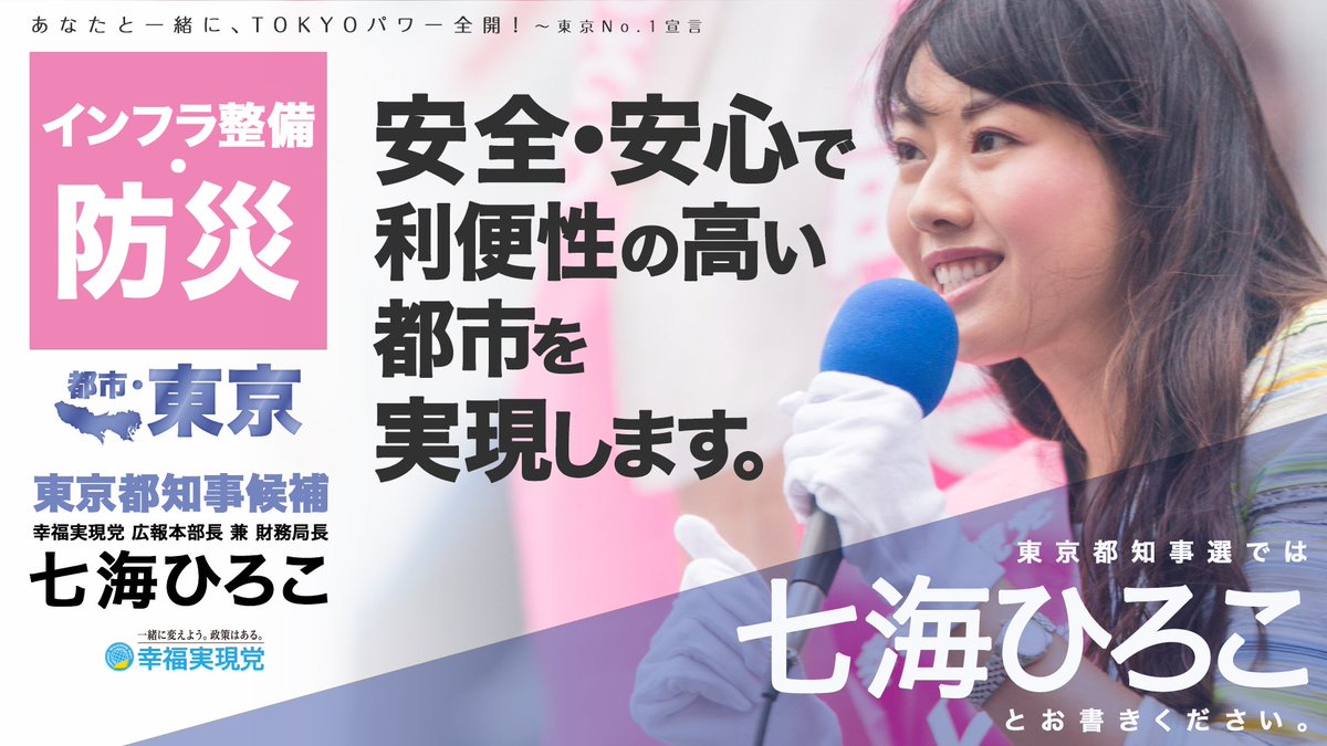 ともあれ、大東京の諸問題を熟知し、それを全く新しい方法論ナナミノミクス(減税・規制緩和・新産業創出・交通革命東京版)で解決しようとする最年少候補、幸福実現党七海ひろこ。