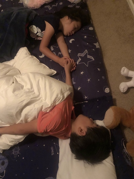 ↓こんな感じで眠っていた長男(小3)と次女(小1)