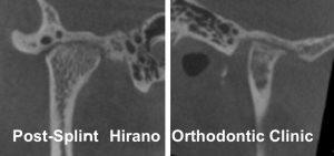 顎位は安定し顎関節の負担か軽減しCT画像にてリモデリングが認められます。(関節等の形態が滑らかに変化し良好な変化が得られています。)