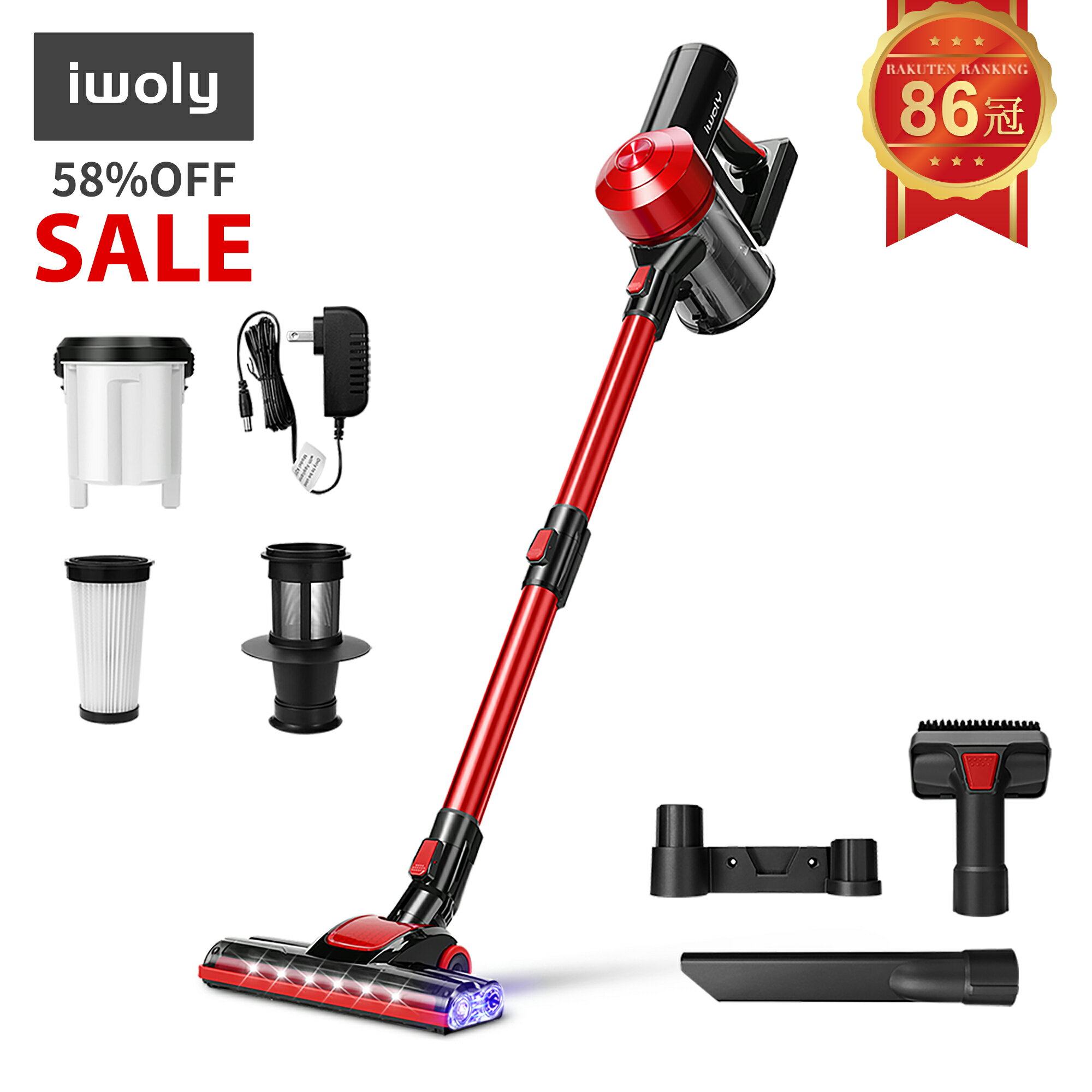 【期間限定58%OFF】【限定500円クーポン+P10倍】掃除機 コードレス コードレス掃除機 サイクロン掃除機 サイクロン式 スティック型 充電式 強力吸引 軽量 コードレスクリーナー スティッククリーナー サイクロンクリーナー そうじき 静音 iwoly 家電【1年保証】楽天市場${EVENT_LABEL_01_TEXT}