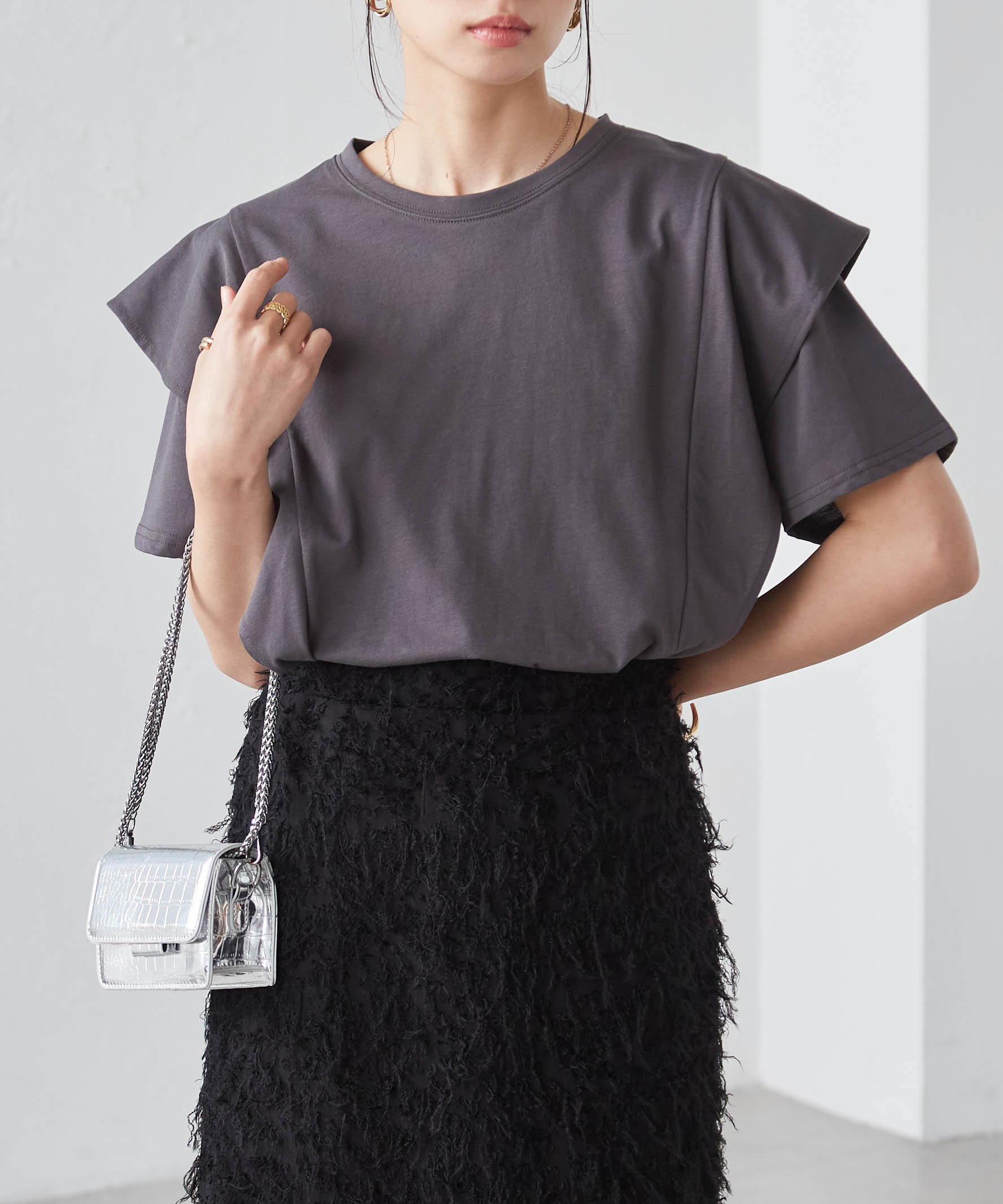 【SALE/16%OFF】Ranan Ranan/(W)ラッフルショルダーTシャツ ラナン トップス カットソー・Tシャツ ネイビー グレー ブラック ベージュ ホワイト楽天市場2,490円${EVENT_LABEL_01_TEXT}