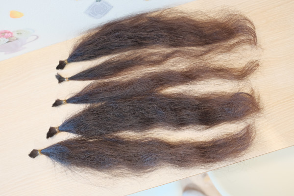 当店では切らせて頂いた髪を綺麗にまとめて、しっかりお役立ち頂けるようにした状態で送っています。(送料当店負担)