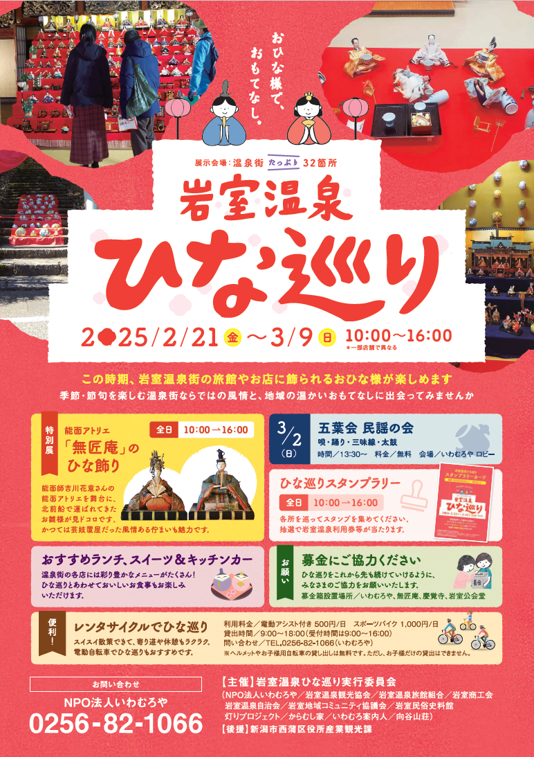 岩室地区の公民館や旅館や一般住宅でひな飾りが展示してあります