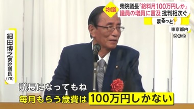 細田博之衆院議長「給料月100万円しか貰ってない。上場会社の社長は1億円以上貰ってるんですよ」 : 理想ちゃんねる1: 名無し 2022/05/12(木) 09:55:34.66 ID:1hQg15+r0 衆院議長「給料月100万円しか」議員の増員に言及 批判相次ぐ https://news.yahoo.co.jp/articles/feb87d1a6418992f6eb5c11ef7183ed08d78efa5ideal2ch.livedoor.biz