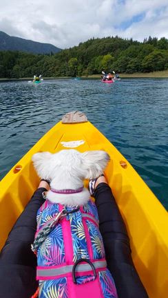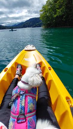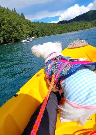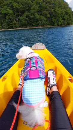 ワンコとシットインカヤックで湖上散歩 in 青木湖