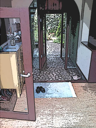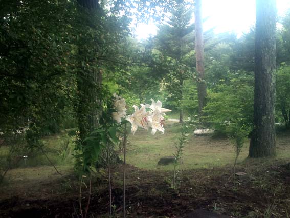 小雨交じりの朝。新潟からのお客様をお見送りに、立ち話。