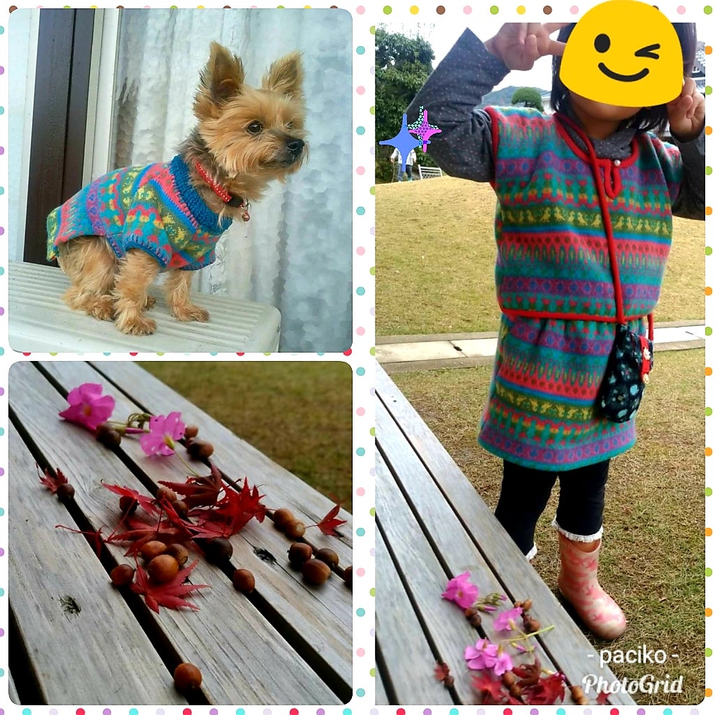 たまたま母がフリマで見つけた生地をリメイクしてくれてワンコとお揃いに