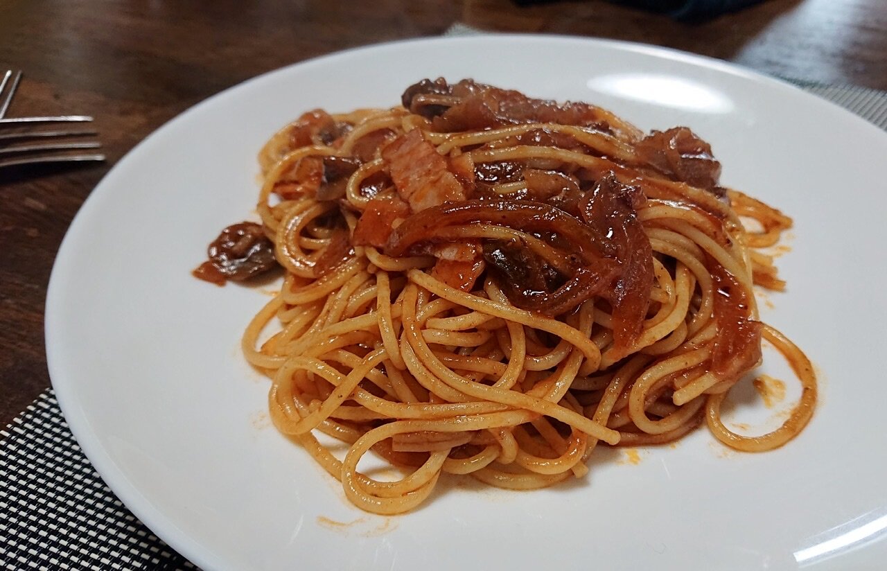 ベーコンと炒めてペペロンチーノ
