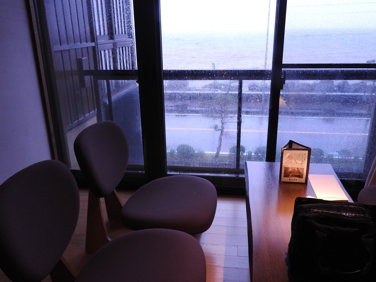 ちょっとだけど雨が吹き込んで寒い(笑)