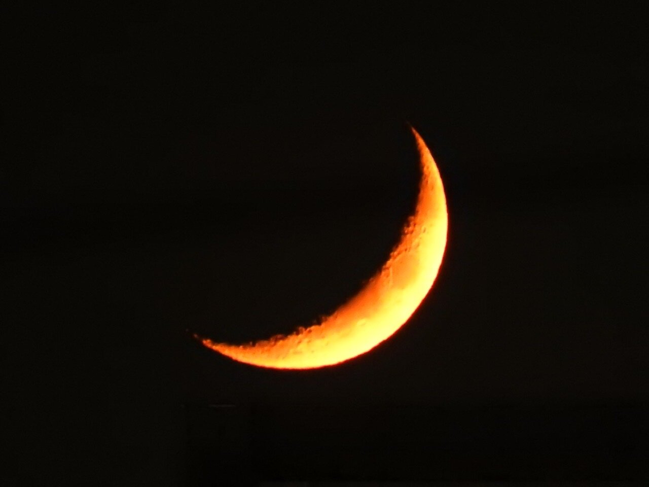 めっちゃ低いところでめっちゃ紅い三日月🌙