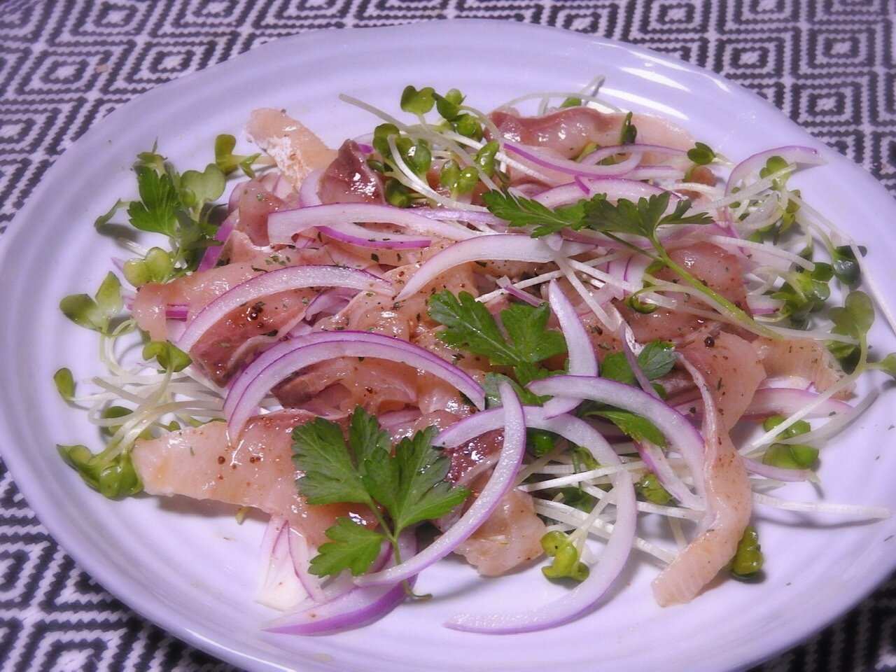オイル漬けしておいたイナダでカルパッチョ