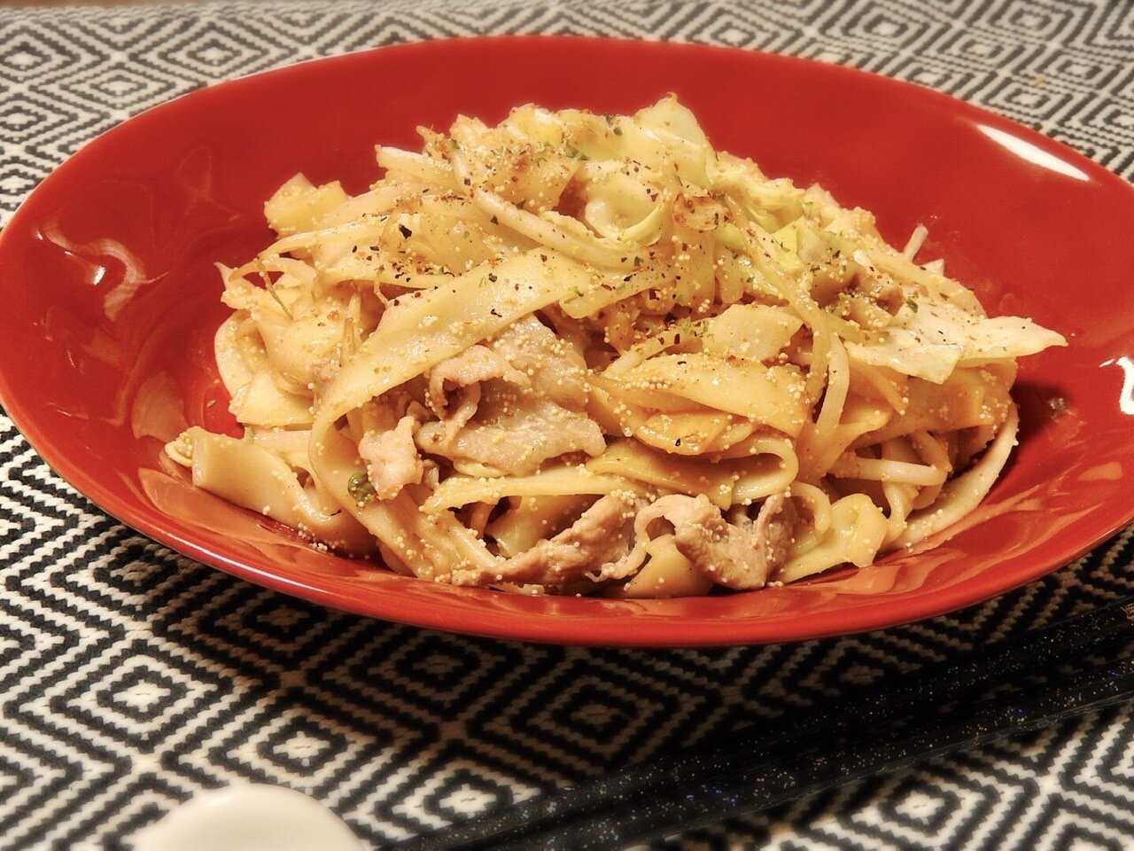 昨日はお昼に焼きうどんしました