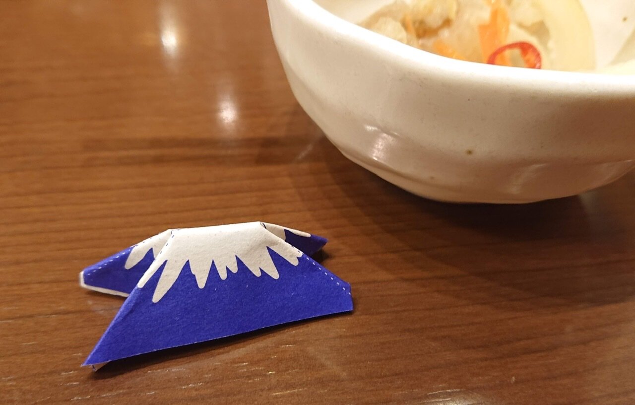 箸袋を点線通り折ると富士山の箸置きに![]()