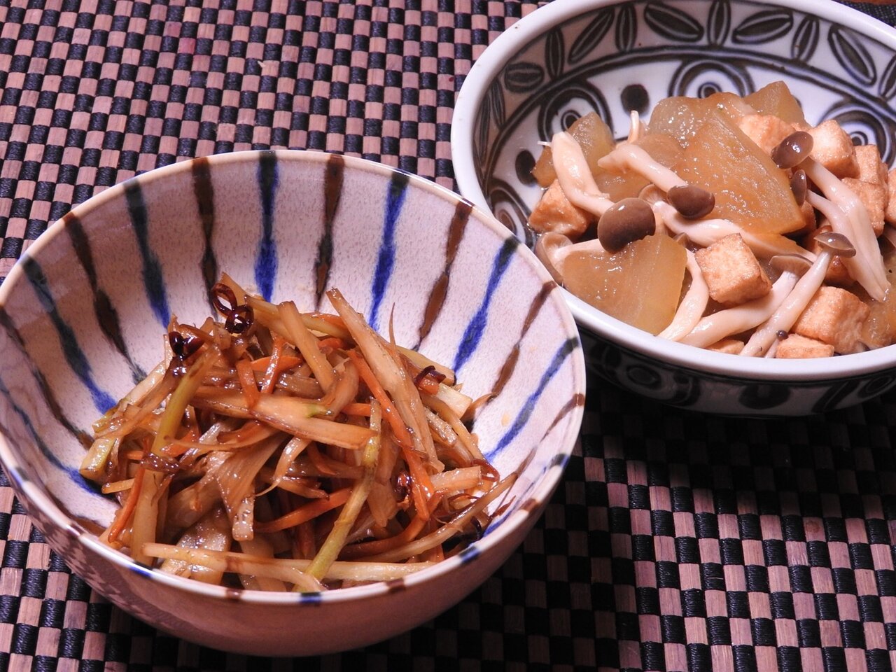 冬瓜とミニ厚揚げの煮物とウドきんぴら