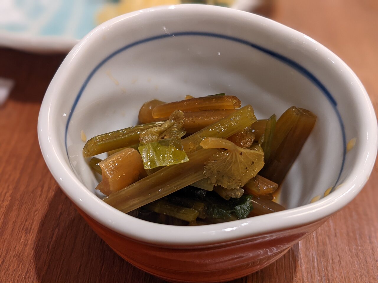 箸休めはわさび菜漬け
