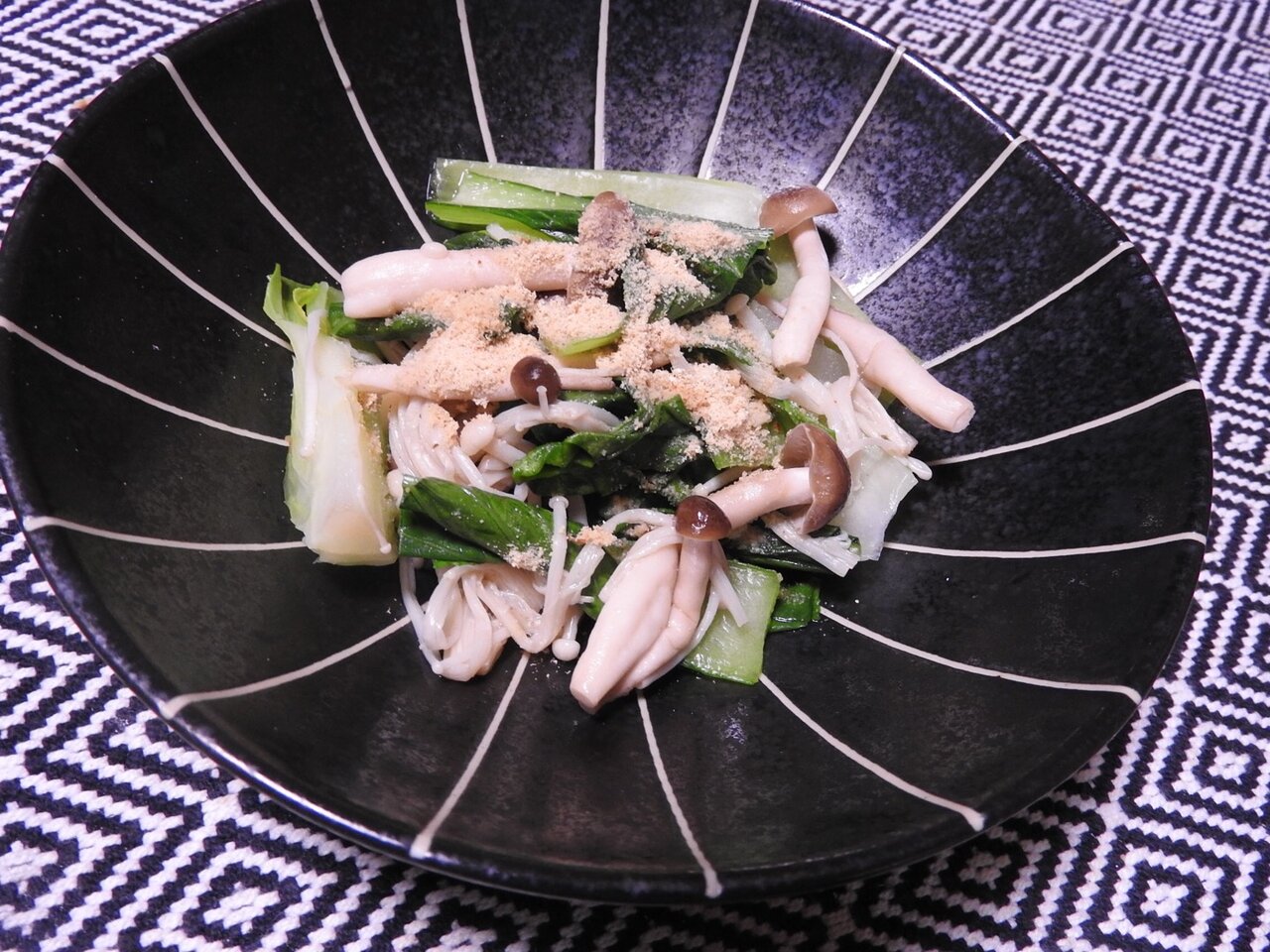 ハンパな青梗菜と冷凍きのこのおひたし