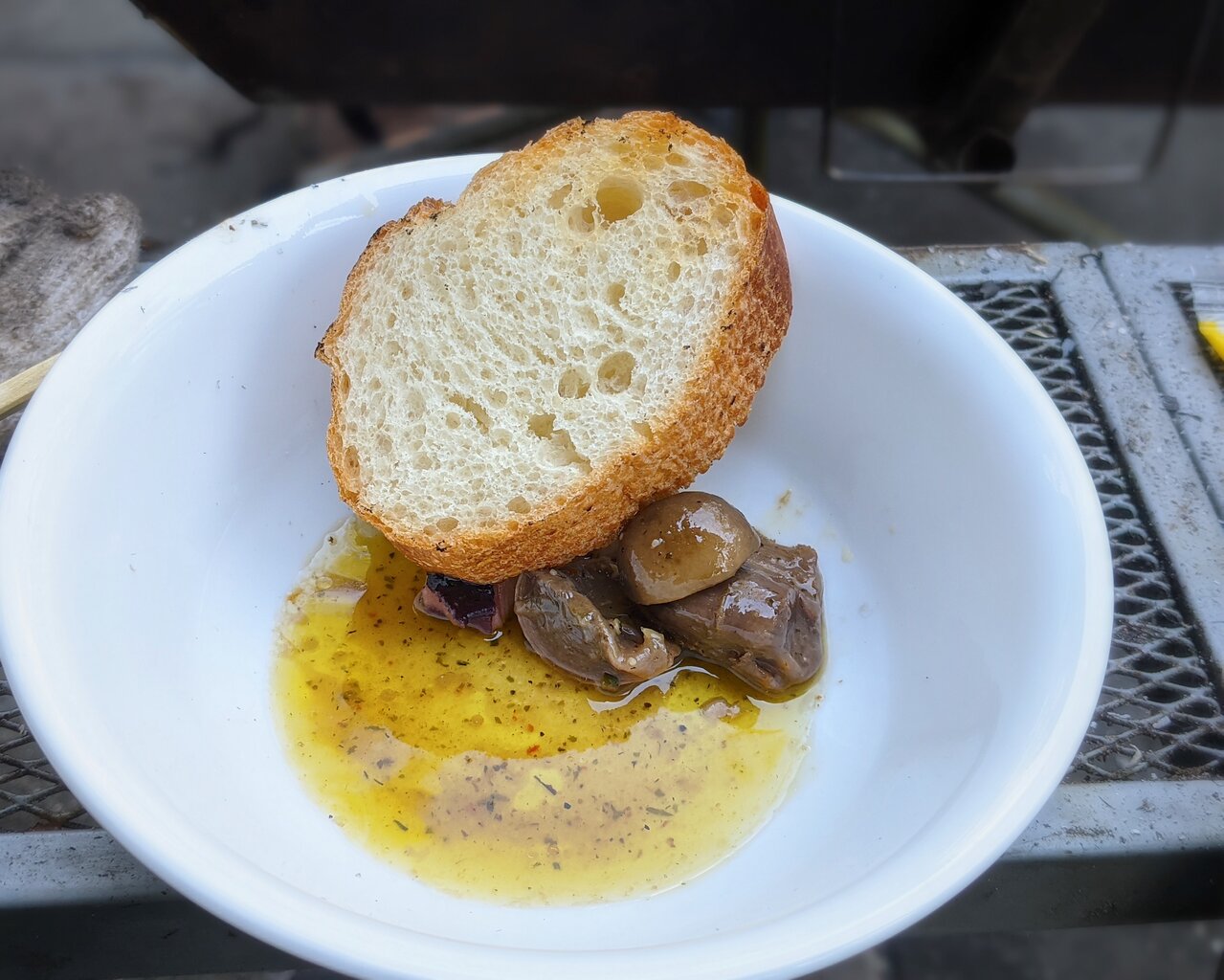 アヒージョの残りには次々ニュー素材が投入され