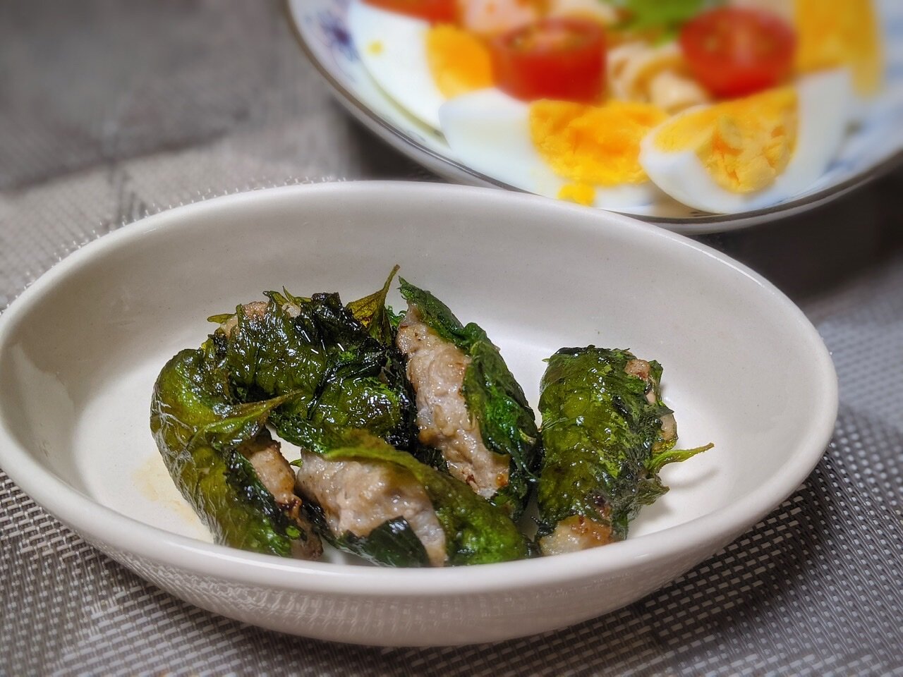 大葉に挟んで焼いてみた👍