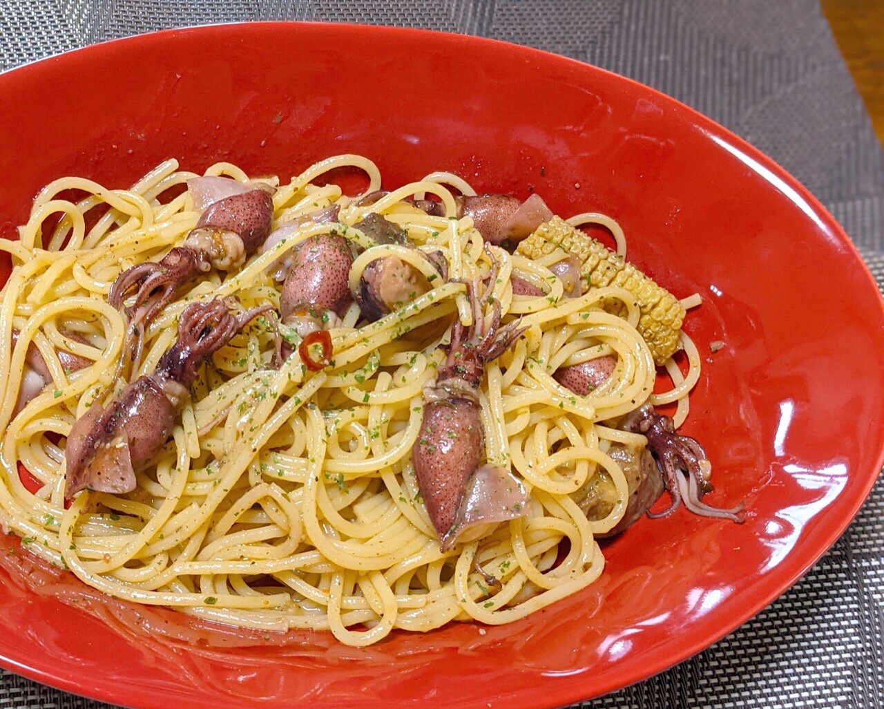 キャンプから持ち帰ったアヒージョでパスタ